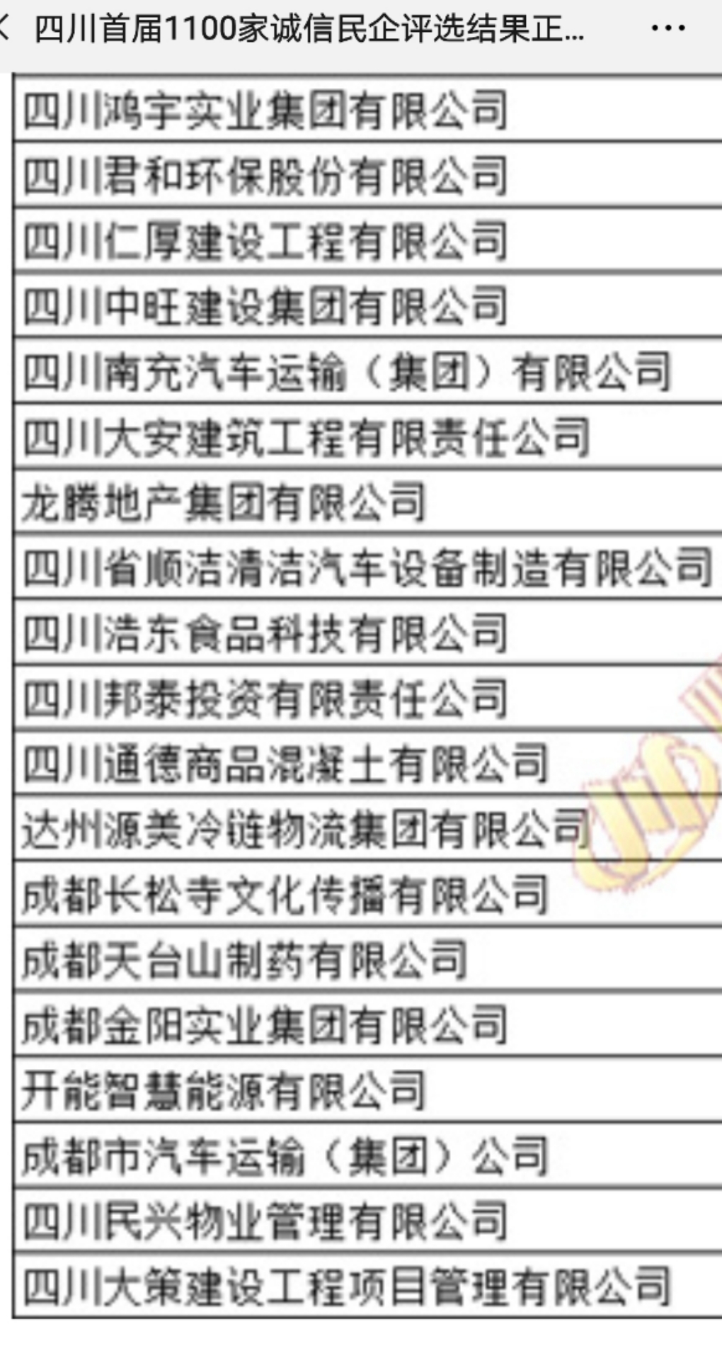 我公司成功入選“四川省誠信民營企業(yè)”