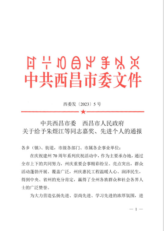 榮譽(yù)|大策西昌片區(qū)總受到西昌市政府通報(bào)表揚(yáng)
