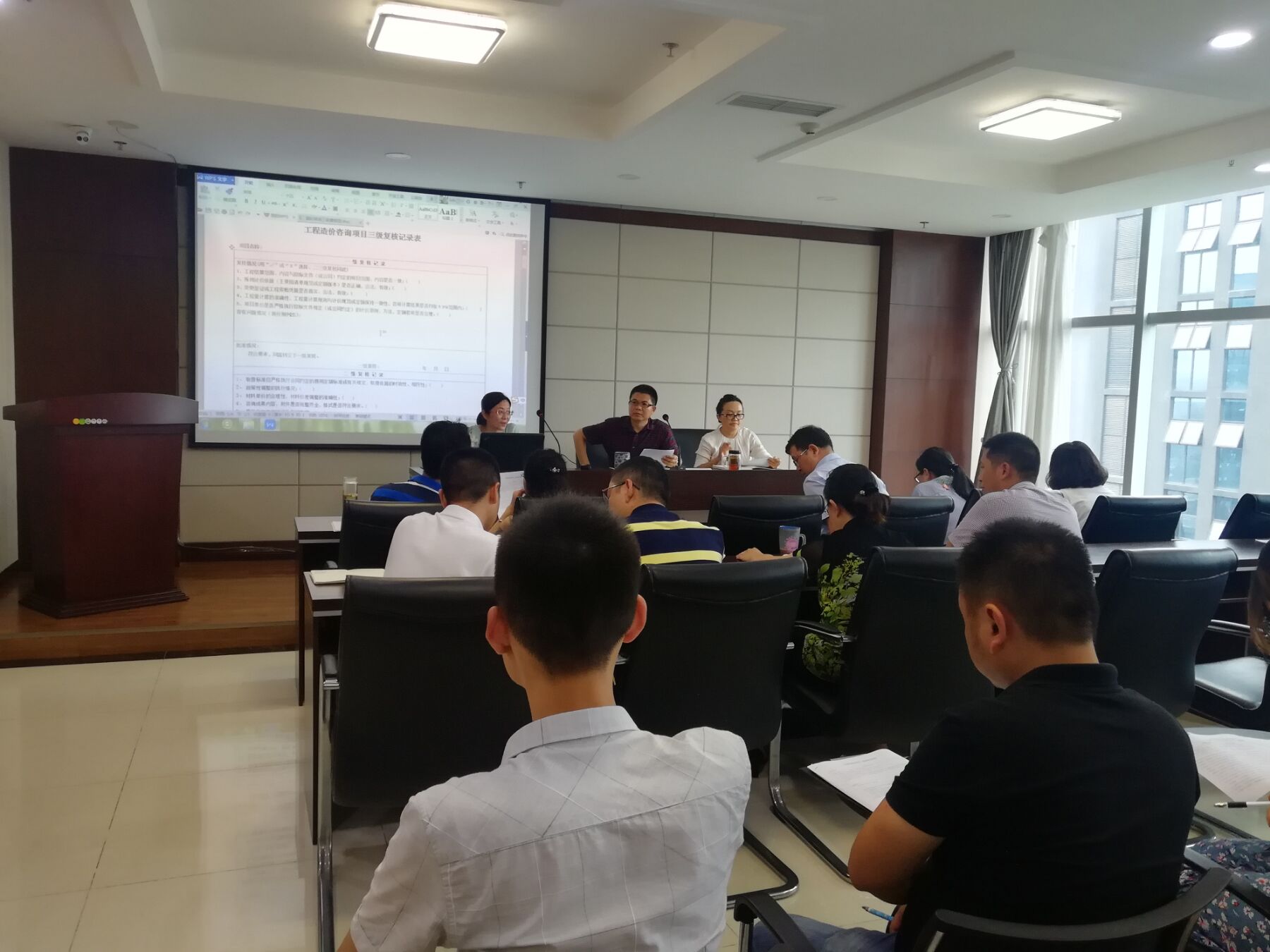 此次會上董事長分析了現(xiàn)在建筑市場諸多不利因素,當(dāng)前造價行業(yè)的現(xiàn)狀,全面總結(jié)了我們現(xiàn)在所作的工作狀況,客觀的分析了工作中存在的問題,并依據(jù)當(dāng)前的目標(biāo)實現(xiàn)情況及工作中存在的問題對今后的工作做了詳細(xì)的安排部署。為提高審計質(zhì)量,我公司將嚴(yán)格執(zhí)行我公司之前頒布的三級復(fù)核制度。之后總工辦付老師給大家?guī)怼对靸r三級復(fù)核管理辦法》的解讀和2018年6月項目復(fù)核情況,從公司實際情況出發(fā),將大家在進(jìn)行審計工作中的優(yōu)點與不足一一指出,并給大家具體講述進(jìn)一步提升員工自身業(yè)務(wù)能力與公司整體審計水平的辦法。然后各部經(jīng)理結(jié)合本部的實際工作情況給大家做了報道,并分享了工作中的實際案例,提出造價咨詢工作中存在的問題與解決辦法,與大家交流研究工作經(jīng)驗與處事方式。最后,總經(jīng)理文總做會議總結(jié)??偨?jīng)理結(jié)合當(dāng)前公司的運作情況和存在的問題,作了工作總結(jié)報告,并分析了當(dāng)前市場環(huán)境的巨大變化,對公司今后的發(fā)展作出了具體部署,對全體員工今后的工作提出了希望和要求。